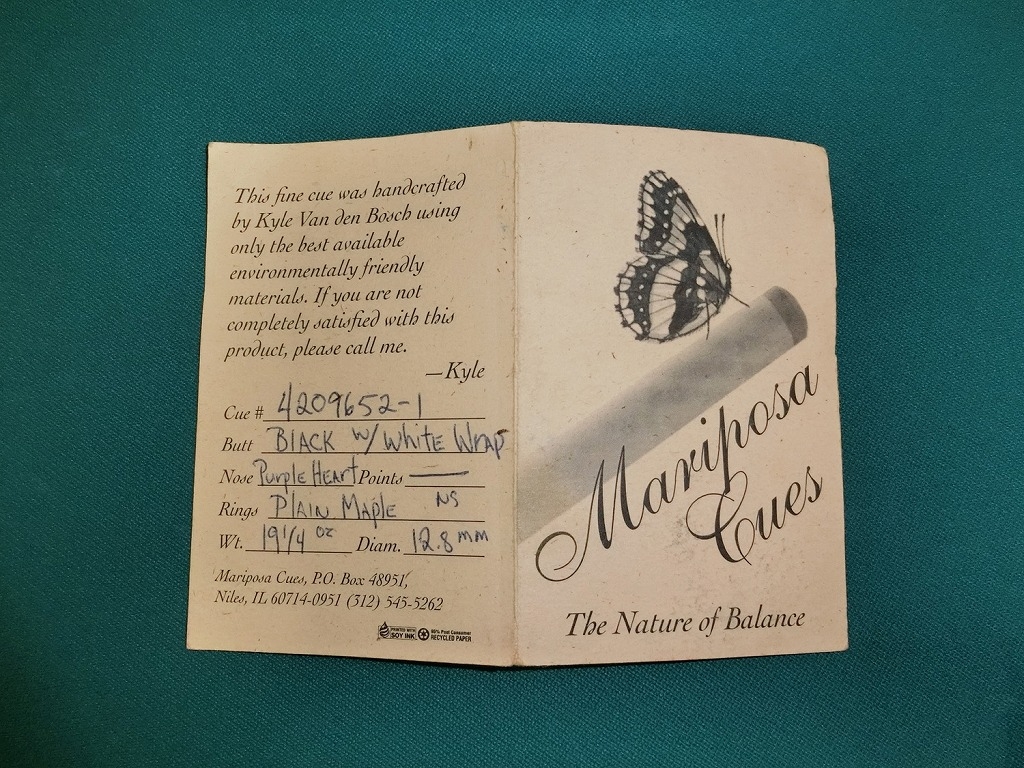 非常に珍しいマリポーサ・キューです。ブルーブックに掲載されていますが、すでに製作されていない絶版キューです。
