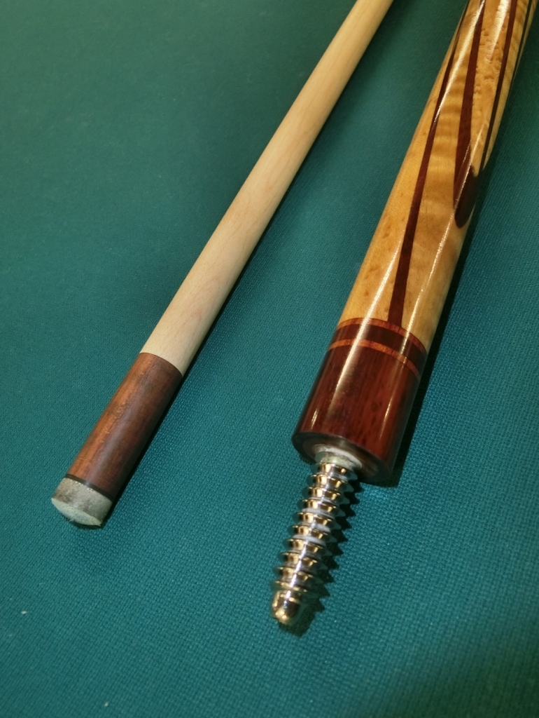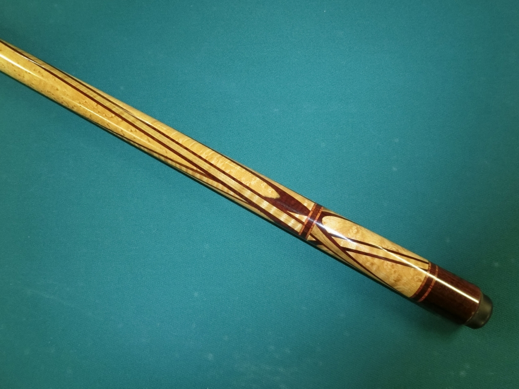 フォアアーム、ハンドル、バットスリーブをすべてこの複合バタフライで作って、それをつなぎ合わせたキューです。大変な手間がかかったことでしょう。