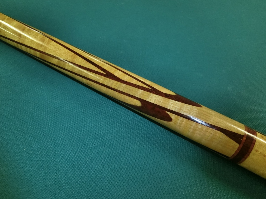 メイプルにスネークウッドでバタフライ・ポイント(タケノコハギ)を複合させたデザインです。一体どうやって製作したのか、まるでパズルのようです。