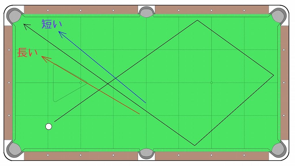 これが長クッション側に向かうなら「短い」、短クッション側に向かうなら「長い」と表現します。