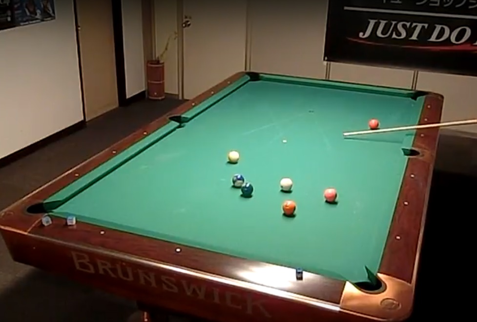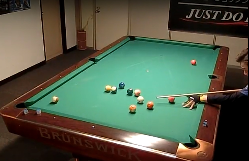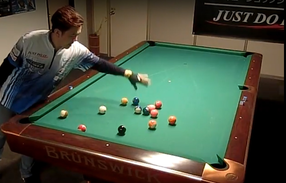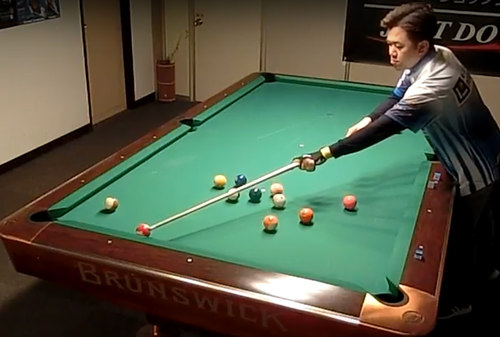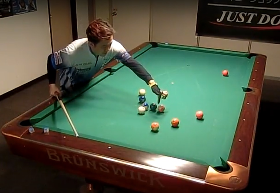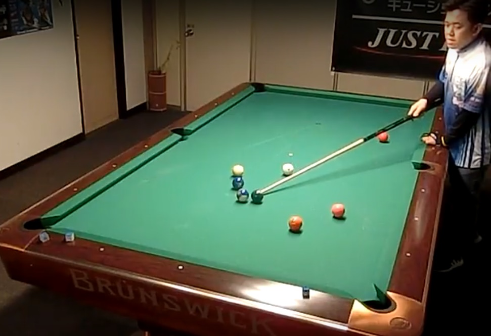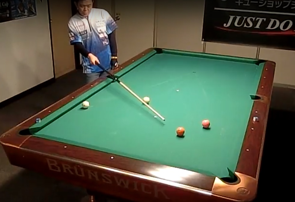 何でもないようなショットですが、的確なコントロールで予告通りの当て方をしています。14-1ではこういったショットが確実にできるかどうかが重要なポイントです。