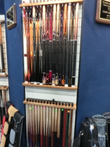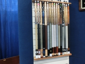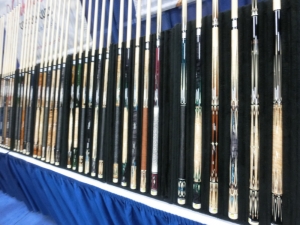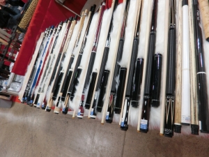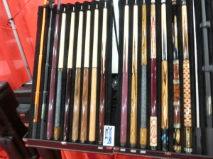 驚くほどバラエティに富んだデザインのキューを展示しています。これだけ色々なデザインのキューを作る為にはかなりの設備を必要とするはずです。一度工房を拝見したいものです。