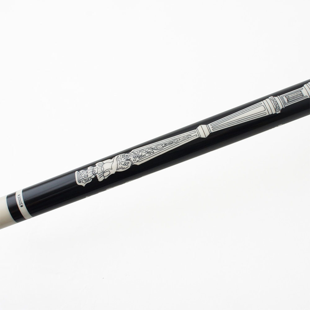 黒檀(おそらくアフリカン・ガブーン・エボニー)のバットに人物の彫像風のインレイが入っています。