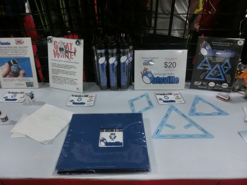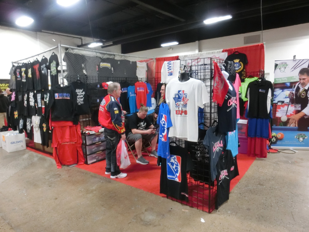 こちらはエキスポでは定番のビリヤード関係のデザインを施したTシャツなどを販売するブースです。