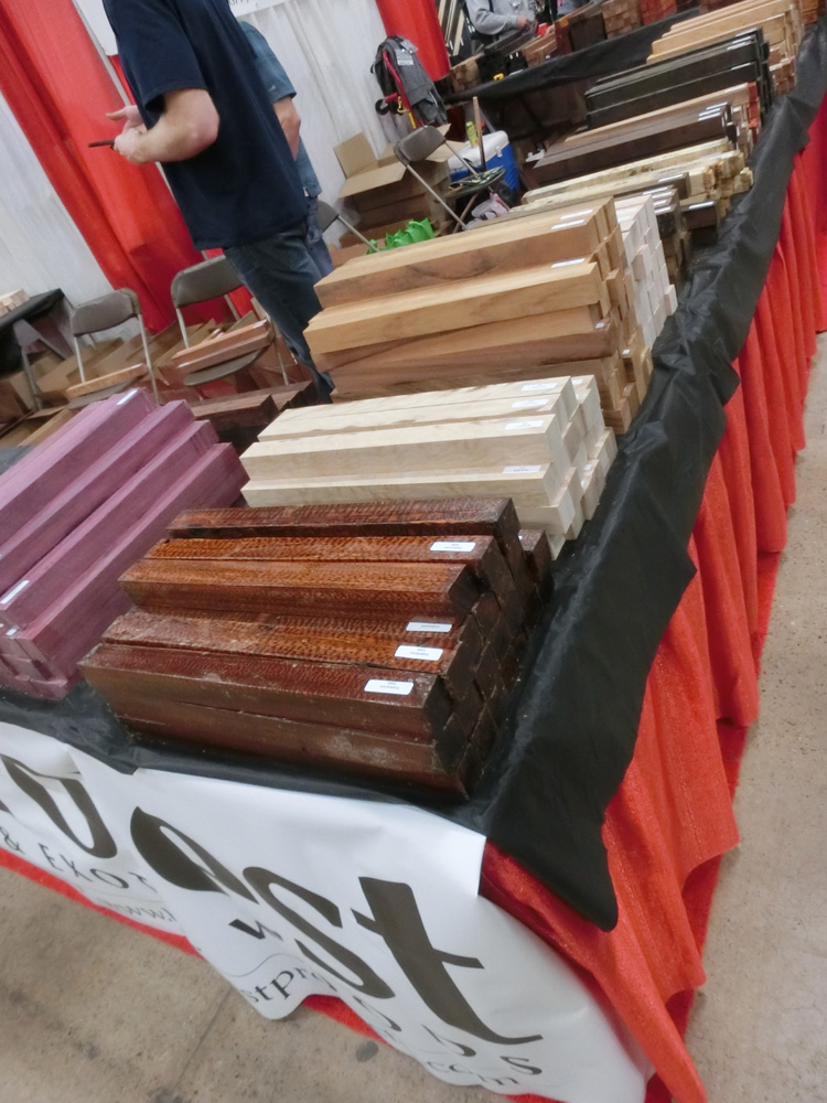 メイプルや黒檀はもちろん、パープルハート、スネークウッド、ココボロ、オリーブウッド、ゴンカロアルブス、果ては輸出入が厳しく制限されているブラジリアン・ローズウッドまであります。