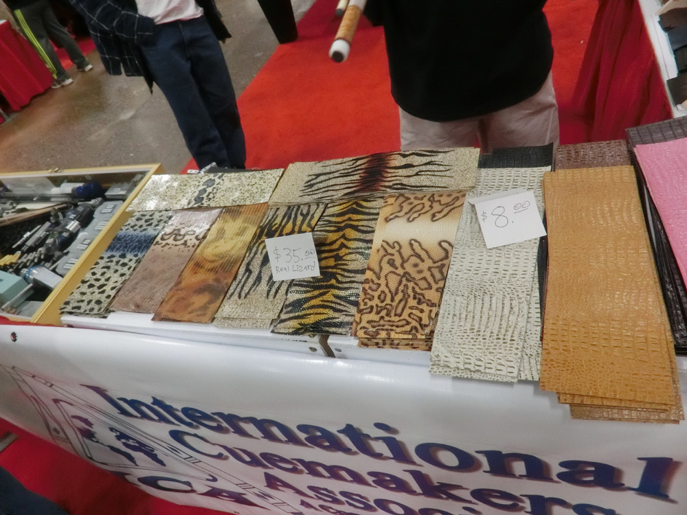 これはグリップの革巻きに使う材料です。アメリカ人好みの派手なデザインが多いですね。