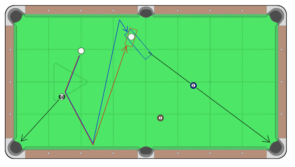 2番に厚く出せれば、後はやんわり撞いて手球をゆっくり前に出すだけで良好なブレイクポジションが取れます。