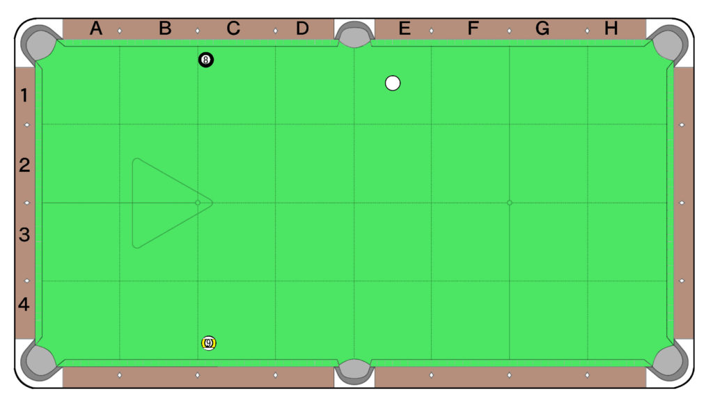 8番のフリが少ししかないので手球を大きく動かすことが難しい配置です。