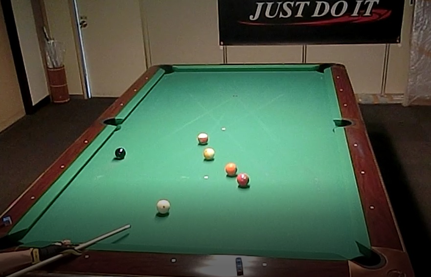 4番を入れた後、手球をワンクッションでこの位置にポジションしました。