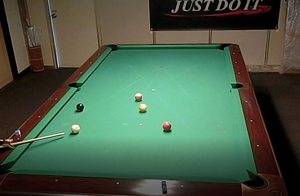 さて、ラックはよく散って手球のポジションも良いのですが、まともに狙える的球は4番しかありません。しかし4番から次に繋げられる的球は幾つかありそうです。