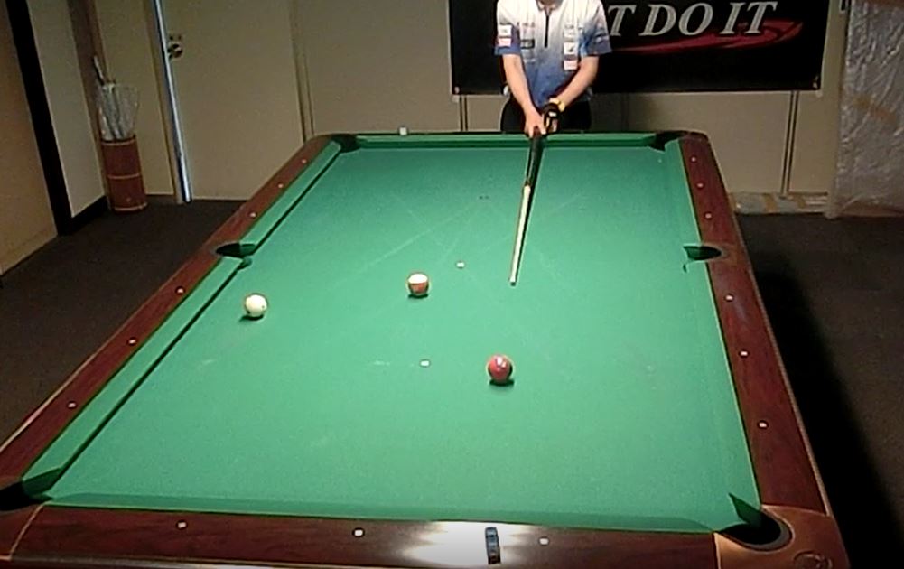 前回、フットスポット真横の時は引きをかけてて手球をテーブル中央付近に戻そうとしましたが、今回はどうでしょうか。