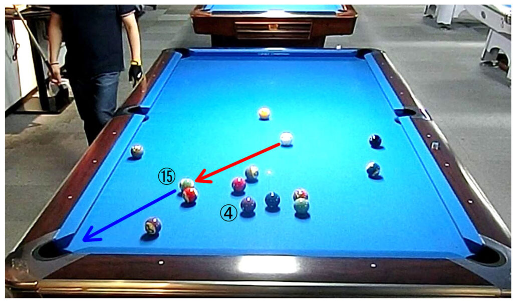 ⑮はほぼ真っすぐで、ストップショットをして次に④を狙います。