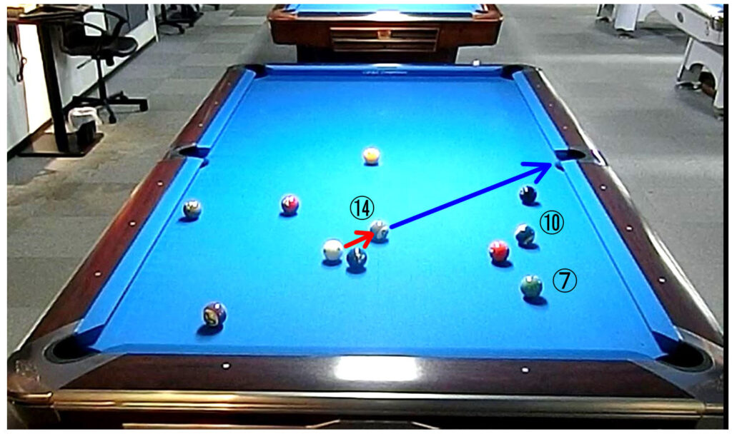 ただ、14-1では次に狙う的球が複数あって、ポジションによって最適な方を選ぶということがあります。つまりショットによって変化した状況に応じて、的球を取る順番を変えていくということが頻繁にあるわけです。