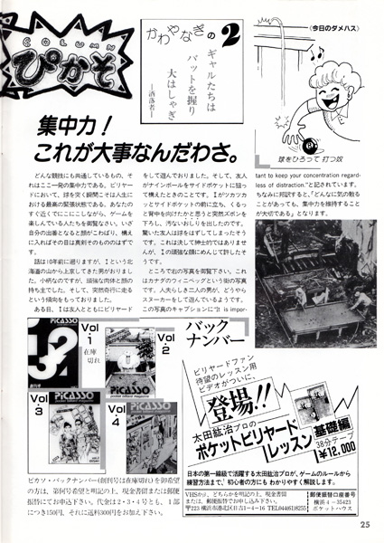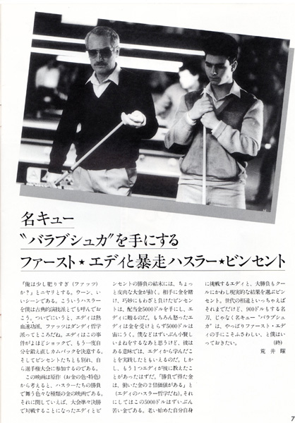この第5号が発売されたのは1987年の1月頃だと思われますが、1986年末にこの映画が日本で公開されて、あの未曾有のビリヤードブームがやってきます。ピカソにとってもまさに渡りに船のタイミングだったでしょう。
