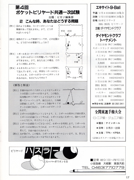 ビリヤード・クイズのページです。