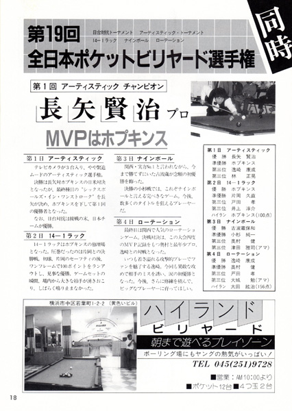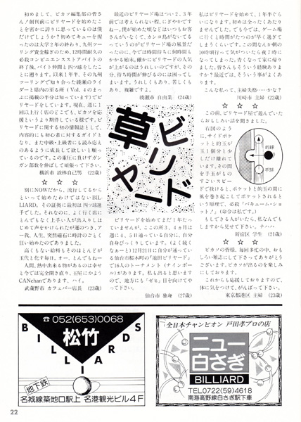 映画「ハスラー2」によるビリヤードブームが起こりつつある中で発行された第5号ですが、まだページ数は前号と同じままです。