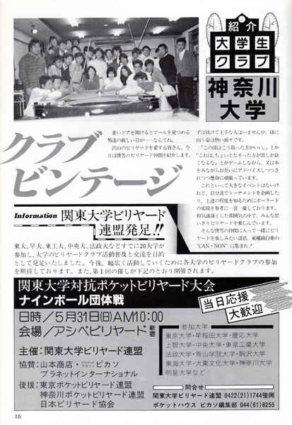 大学のビリヤードサークルの記事です。