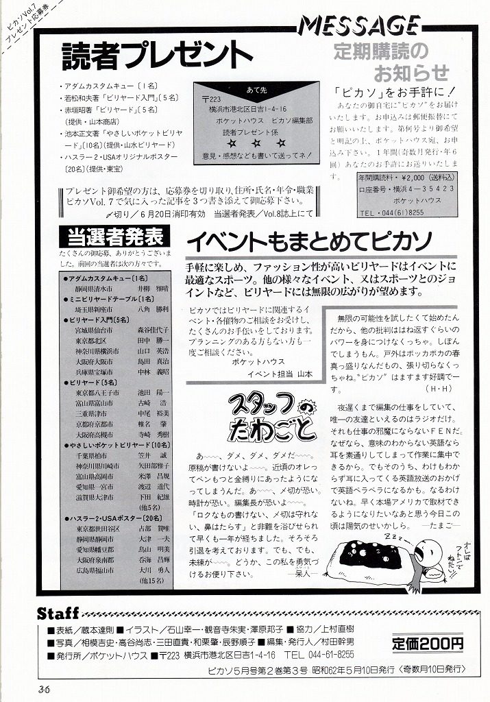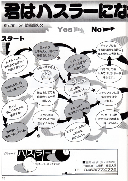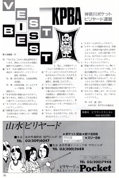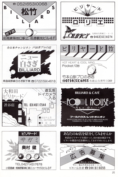 スタッフ野田はビリヤードと無関係のページは削って奥村プロのビリヤード教室のページを増やして欲しいと編集部に要望した記憶があります。