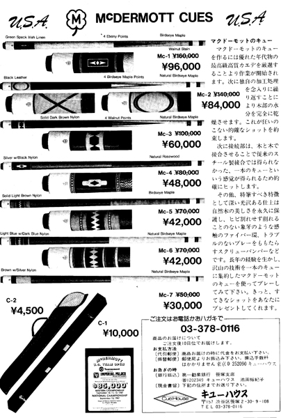 スタッフ野田の得意分野ですが、当時はアメリカのカスタムキューの知識などほとんどなく、この記事を読んで「すごいなあ、欲しいなあ」とよだれを垂らしていました。