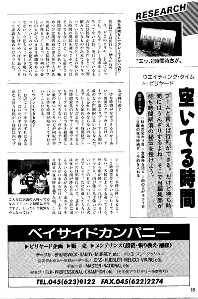 スタッフ野田は渋谷の100台(!)を擁する某ビリヤード場を練習場にしていましたが、最盛期には開店から1時間足らずで満台になってしまいました。