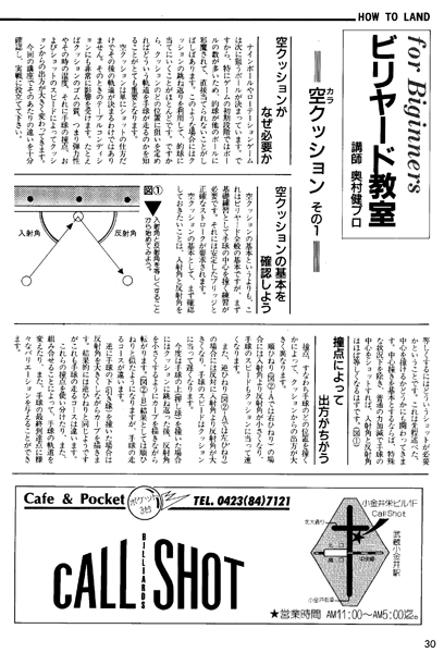 奥村プロのビリヤード教室です。ピカソから引き続いての掲載です。