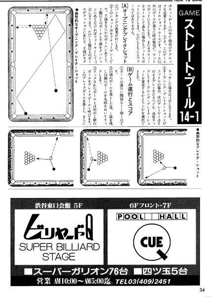 なお、この記事の中に的球の飛び出しはファールにならないと書いてありますが、現在は他のゲーム同様14-1でもファールの扱いになっています。