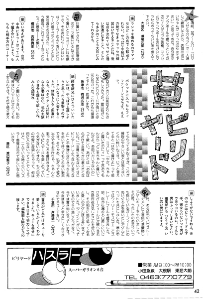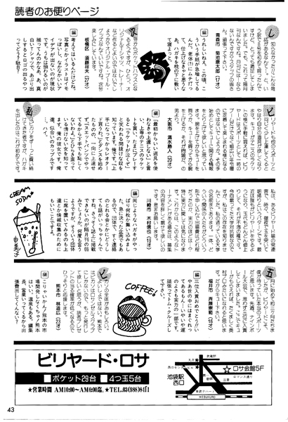 「ポケットハウスになってもこのコーナーやるんかい! しかもカラーページとはどういうこと? 奥村プロのページを増やせ~!!」と当時のスタッフ野田は憤慨していました。