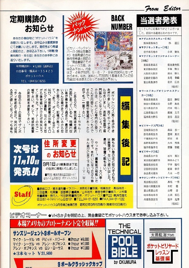 前号(ピカソ8号)のビリヤードクイズの解答が掲載されています。