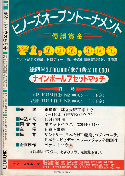 優勝賞金100万円、総額300万円! ・・・・バブルだなあ。