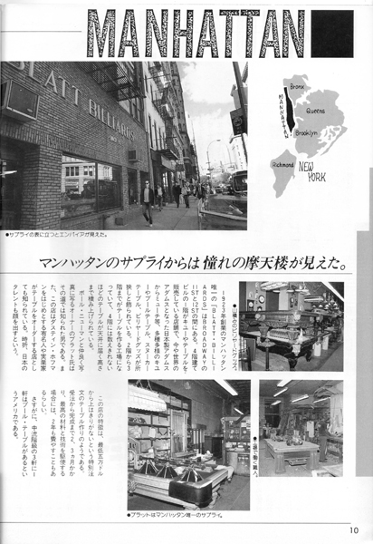 10ページで紹介されている特注ビリヤードテーブル(最低5万ドル!)の製造で有名な「ブラット・ビリヤード」もマンハッタンにあります。