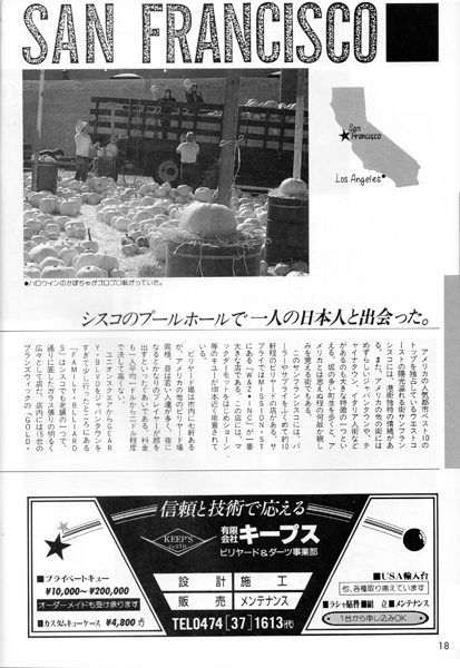 スタッフ野田がサンフランシスコに行ったのは新婚旅行の時で、嫁さんの白い目をあえて無視しながらビリヤード場巡りをしました。この記事の中にある「Famiy Billiards」にも行き、いろいろビリヤードグッズを買い込んだ覚えがあります。