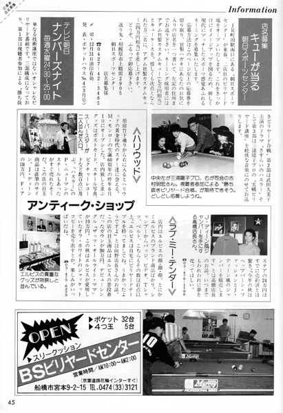 ビリヤードのTV番組やビデオゲームの他に、ビリヤードとは縁もゆかりもないアンティークショップなどの記事もあるのがすごいですね。