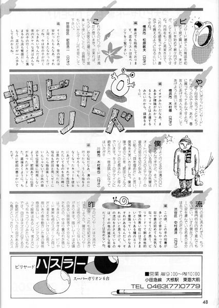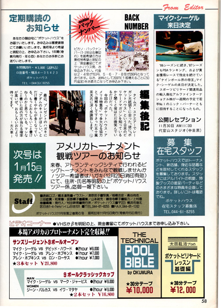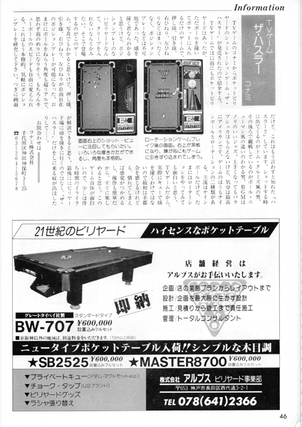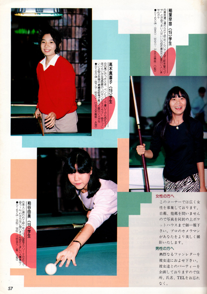 当時のスタッフ野田は、とにかくビリヤードの腕前を上げることにしか興味がなく、このページはすべて無視していました。